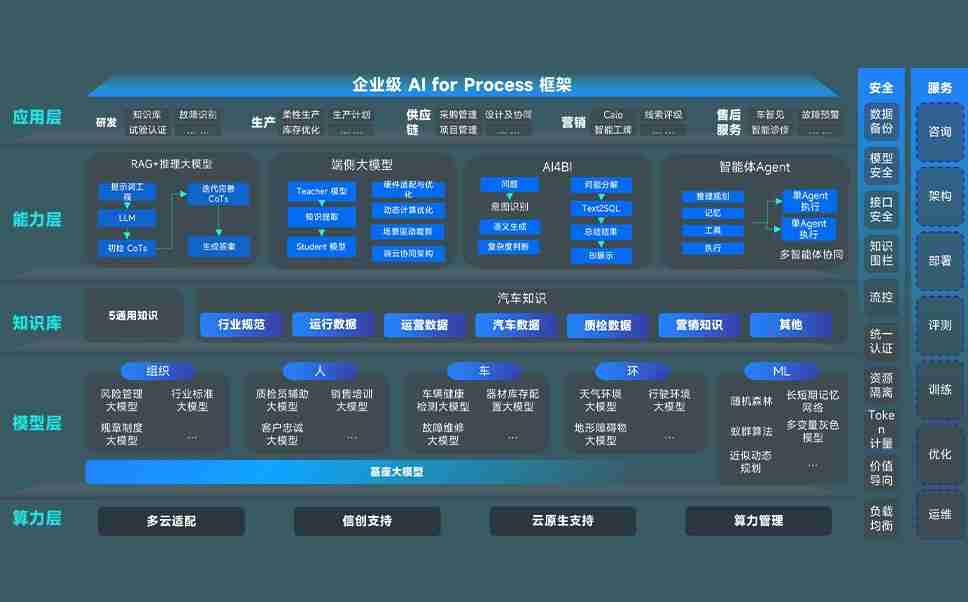 AG尊龙问学智车解决方案是一套基于AI技术的汽车行业智能化系统,,,覆盖从底层算力到顶层AI应用的全栈方案。。方案由算力层、、、、模型层和应用层组成:算力层,,方案支持多种一体机配置,,,具备云端灵活部署、、多云适配以及动态优化计算资源的能力;模型层,,AG尊龙问学平台版提供了企业级AI应用一站式构建与管理平台,,,支持基于后训练强化技术的汽车企业专属模型的训练、、评测和运营;应用层,,,AG尊龙问学DeepSeek版提供包括超级员工、、、、智能招采、、、智能营销、、、智能客服、、、AI for BI等一系列解决方案,,,,可助力汽车行业实现数字化转型,,,,让管理更智能、、、响应更敏捷。。